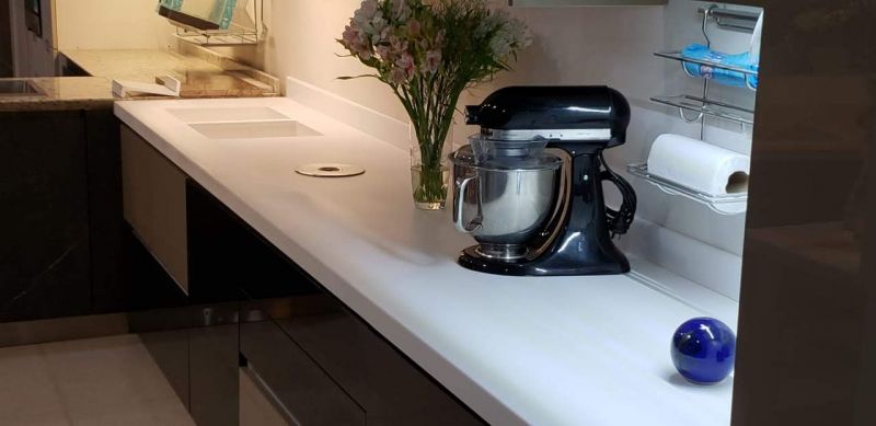 Mesadas prefabricadas cortadas a medida y pulidas, 100% en superficie sólida Tresol® que otorgan diseño y exclusividad a su ambiente.
