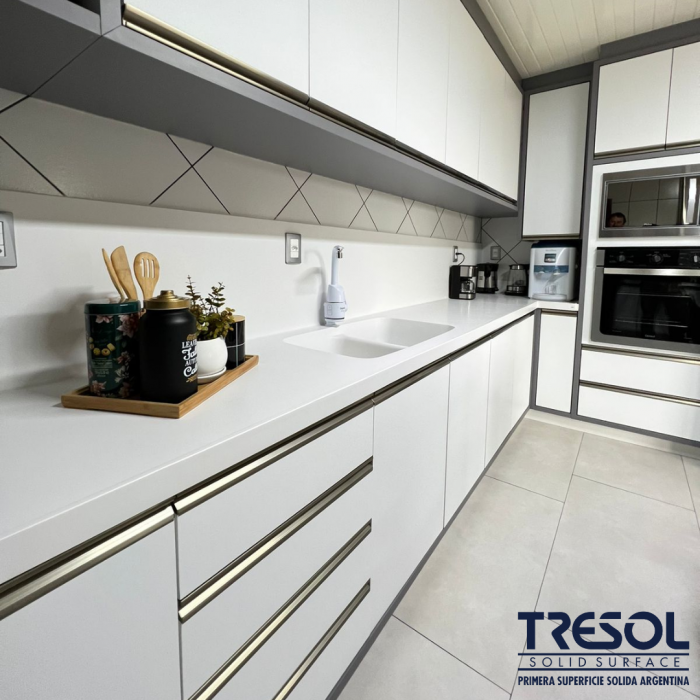 Fabricada con la más alta calidad en superficie sólida, nuestra bacha Tresol D20 no solo impresiona visualmente, sino que también garantiza durabilidad y resistencia a largo plazo. Su diseño moderno y minimalista se adapta perfectamente a cualquier estilo de decoración, añadiendo un toque de sofisticación a tu cocina Con una amplia superficie y una profundidad generosa, esta bacha ofrece comodidad y funcionalidad para tus actividades diarias, ya sea que estés lavándote las manos para cocinar o el lavado de alimentos y utensillos, la bacha Tresol D20 te ofrece el espacio y la comodidad que necesitas. Además, su superficie lisa y fácil de limpiar hace que el mantenimiento sea una tarea sencilla, permitiéndote disfrutar de una belleza impecable con un mínimo esfuerzo. Transformá tu cocina en un ambiente de estilo y comodidad con nuestra bacha en superficie sólida Tresol modelo D20. ¡Adquirila hoy mismo y experimentá la excelencia en cada detalle!Bacha Cocina Doble Tresol Modelo D20