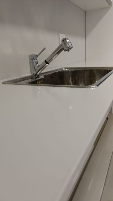 Fabricadas en un espesor ultra resistente de 15 mm de espesor, profundidad estandar 650 mm, largo a medida (máximo 2400 mm), superficie y cantos pulidos, incluye zócalo posterior 50 mm de altura.
