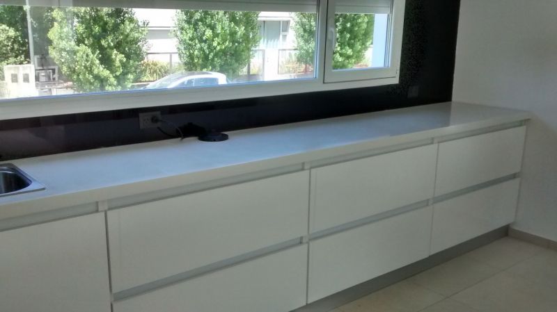 Mesadas prefabricadas cortadas a medida y pulidas, 100% en superficie sólida Tresol® que otorgan diseño y exclusividad a su ambiente.